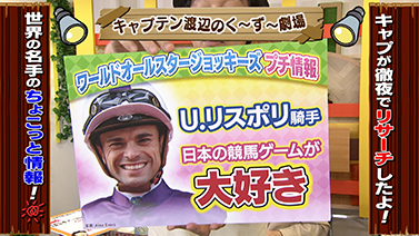 く〜ず〜劇場ではワールドオールスタージョッキーズに出場する騎手のプチ情報を紹介。