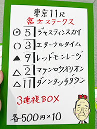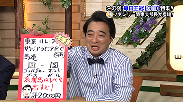 ※番組内では「タスティエーラをいれた3連複、3連単」と言っていましたがフリップの記入が間違っていました。
