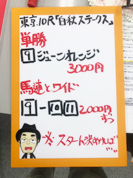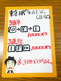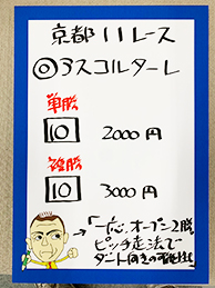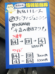 それでは御神本騎手にも加わって頂き馬券対決に参りましょう。