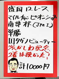 虎石さんは本命にアジアノジュンシンを選んでいたものの相手が来ず的中とはなりませんでした。