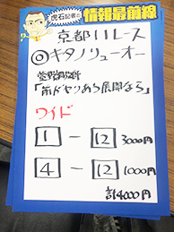 キャプテンさん単勝、三連複、そして123.8倍の3連単見事的中です!!