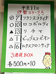| 中京11R 伊勢ステークス | |