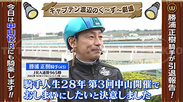 今週のくーずー劇場では勝浦騎手の引退発表をウイニング競馬で放送!!