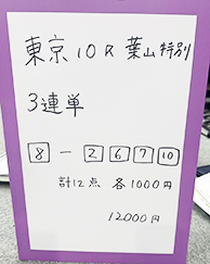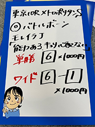 | 【結果】 1着(10)バトルハーデン・2番人気 2着(5)バニシングポイント・7番人気 3着(6)ダイシンヤマト・1番人気 |