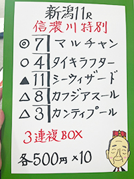 続いては、新潟メイン「信濃川特別」の結果になります。
