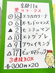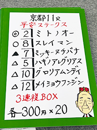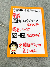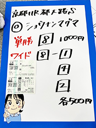 それでは馬券対決に戻りましょう!京都メイン【GⅢ】「葵ステークス」の結果になります。