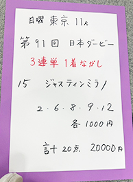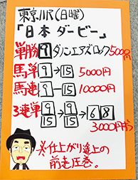 最後に、日曜重賞【GⅠ】「日本ダービー」の結果になります。
