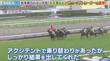 | 【結果】 1着(3)グラウンドビート・1番人気 2着(1)スタンリーテソーロ・2番人気 3着(9)ショウナンカブト・4番人気 |