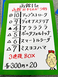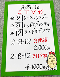 それでは馬券対決に戻りましょう!函館メイン「函館日刊スポーツ杯」の結果になります。
