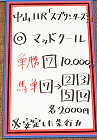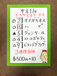 | 中山11R スプリンターズステークス【GⅠ】 | |