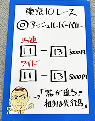 単勝、馬連、ワイドの全的中で払い戻し19万9900円!