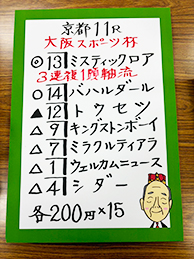 次に京都メイン「大阪スポーツ杯」の結果になります。