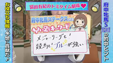 さらに冨田アナ、まりえさんが凱旋門賞取材のため虎石さんと水原アナウンサーが代打出演してくださいました。