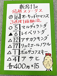続いては新潟メイン「烏屋野特別」の結果になります。