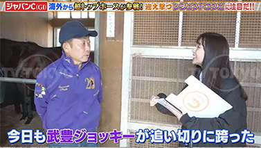 ルメール騎手はとダルビッシュ有投手、武豊騎手は大谷選手と高岸さんにも分かりやすく野球選手に例えて紹介しました。