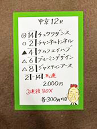 そして、今週は中京12Rも馬券対決しました!