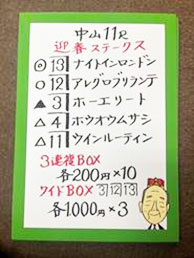 | 中山11R サンライズステークス | |