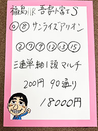 | 【結果】 1着(7)ルージュアベリア・2番人気 2着(15)ライジンマル・1番人気 3着(14)キングオブフジ・6番人気 |
