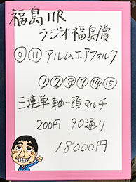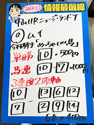| 【結果】 1着(3)ダンテバローズ・3番人気 2着(8)サンライズアリオン・4番人気 3着(9)マリアナトレンチ・7番人気 |