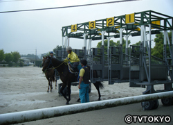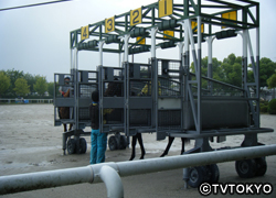 このように、普段の調教からゲートに立ち止まらせ、恐怖心を和らげる練習をしてい
