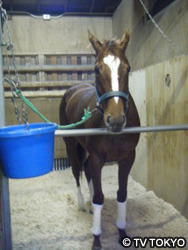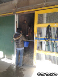 競馬場に併設されている厩舎の馬房にて。