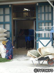 ターフでの圧倒的な強さから想像も出来ない、馬房でのんびりしているウオッカ。