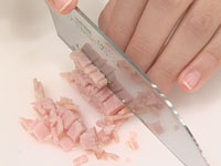 1.ベーコン、玉ねぎを切る