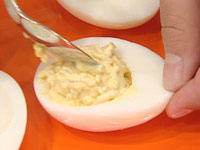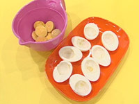 2. ゆで卵を半分に切り、黄身をとり出す