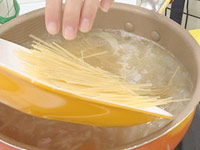 3. (2)にパスタを折って加える。