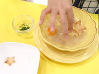 4.器に盛りつけ、クルトン(星型で抜いてトーストしたもの)、パセリを飾る。 |