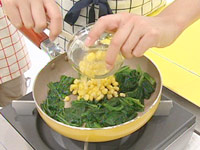 1.ほうれん草はゆでて冷水にとり、水気をよくしぼり、4〜5cmの長さに切る