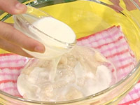3. (2)でとり出した黄身と(1)の材料を混ぜ合わせる |