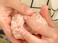 1.合挽肉、木綿豆腐、玉ねぎ、パン粉、溶き卵をボウルに合わせてよく練る。