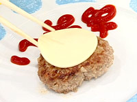 ケチャップで名前を書く。 |