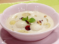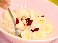 4.器に白玉、バナナを入れ、(3)を注ぎトッピングする。 |