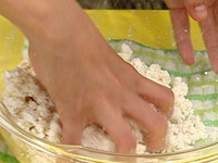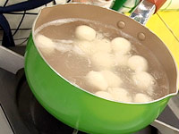 1.ボールに絹豆腐、白玉粉を入れ練り混ぜて、固いようなら水を少しずつ加えよく練る。
