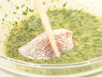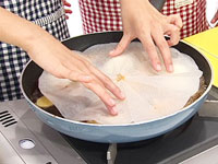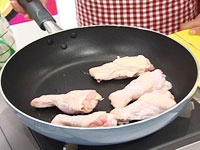 3.フライパンに油を熱し(1)のとり肉を(2)の卵液につけ焼く。(片面2〜3分) |