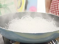 3.(2)の油を高温にし、春雨を揚げる。 |
