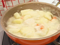 油が回ったら水と人参を入れじゃがいもがやわらかくなるまで煮る(15分位)。