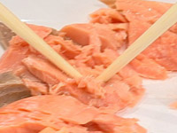 焼きあがったらほぐす。 |
