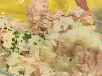 玉ねぎ、塩こしょう、鮭缶を入れて混ぜる。