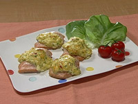 4.(1)の鮭の上に(2)のタルタルソースをのせ、