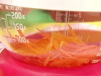 2.にんじんを千切りにして(4cm)ボール(耐熱皿)に入れる。