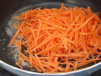 2.鍋に油を熱し、(1)をよくいためる。(2〜3分)