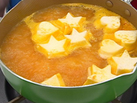 3.はんぺんをハート型で抜き、(2)に入れる。 |