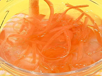 1.にんじんはピーラーを使って薄くスライスして氷水に浸す。 |