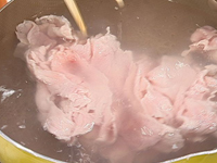 2.熱湯に豚しゃぶ肉を入れ、サッと火を通してザルにあける。 |