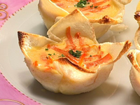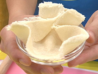 1.サンドイッチ用パンをめんぼうで薄くつぶし、耐熱容器にカップ状になる様に入れ、