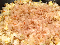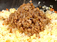 納豆・白ゴマを加えてさらにいため、おかかを加える