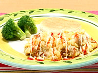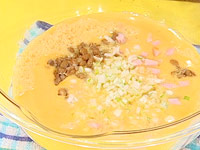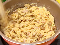 3.フライパンにバターを溶かし、(2)を流しいれ、半熟になるまでかき混ぜる。 |